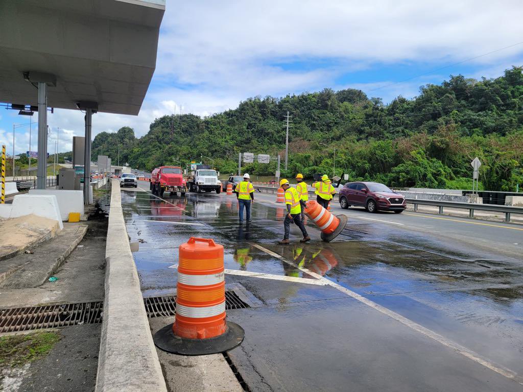 El consorcio Metropistas anunció a través de sus redes sociales, que los carriles afectados por una construcción en el area de la caseta de recarga del peaje de Toa Baja fueron reabiertos al transito luego de concluidas las tareas del fin de semana. Durante horas de la tarde personal del contratista que llevaba a cabo los trabajos realizaban labores de limpieza mientras se removian los drones chinita a la altura del km 21.1 en direccion de Bayaón hacia Dorado.