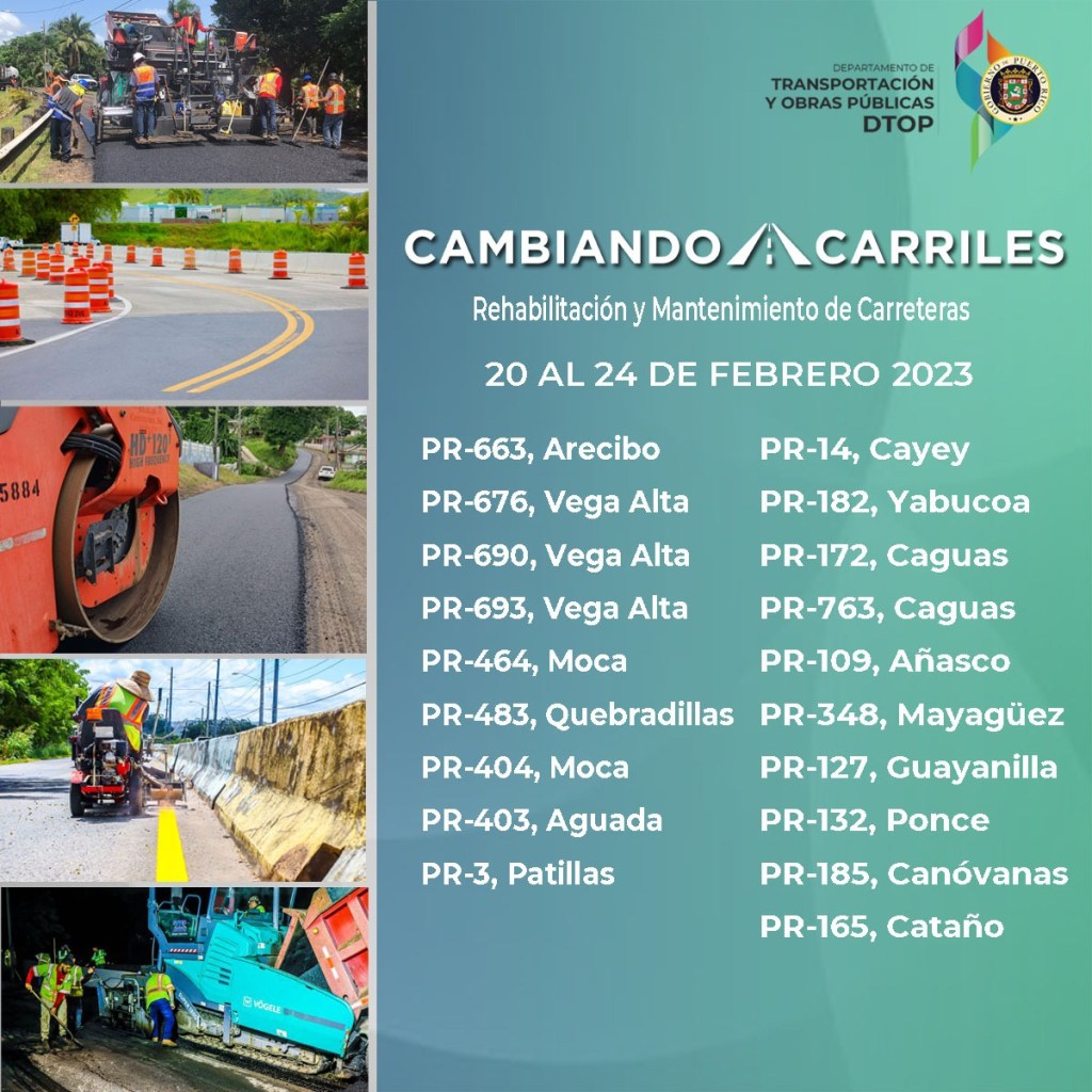 El DTOP informó la programación de los trabajos para esta semana a través de sus redes sociales. Las tareas son parte del programa conocido como Cambiando Carriles.