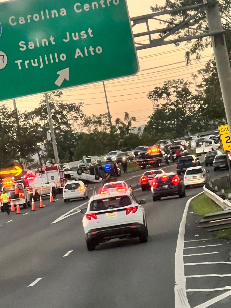 Se reporta choque con vehículo volcado en el Exp Baldorioty (PR26) a la altura de Plaza Carolina en dirección de SJ a Carolina. Personal de primera respuesta y de la policía atienden la situación.