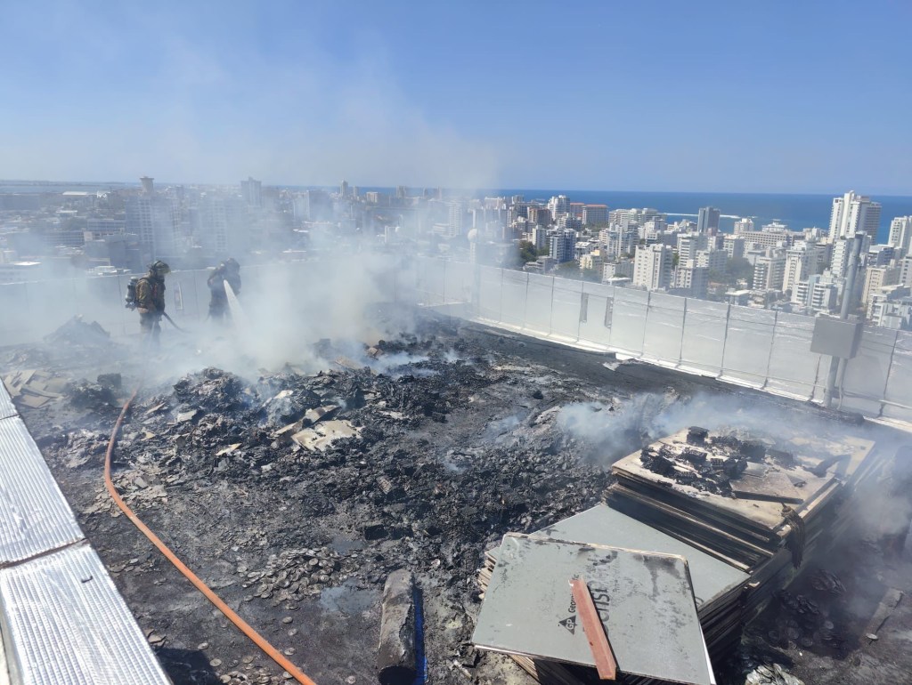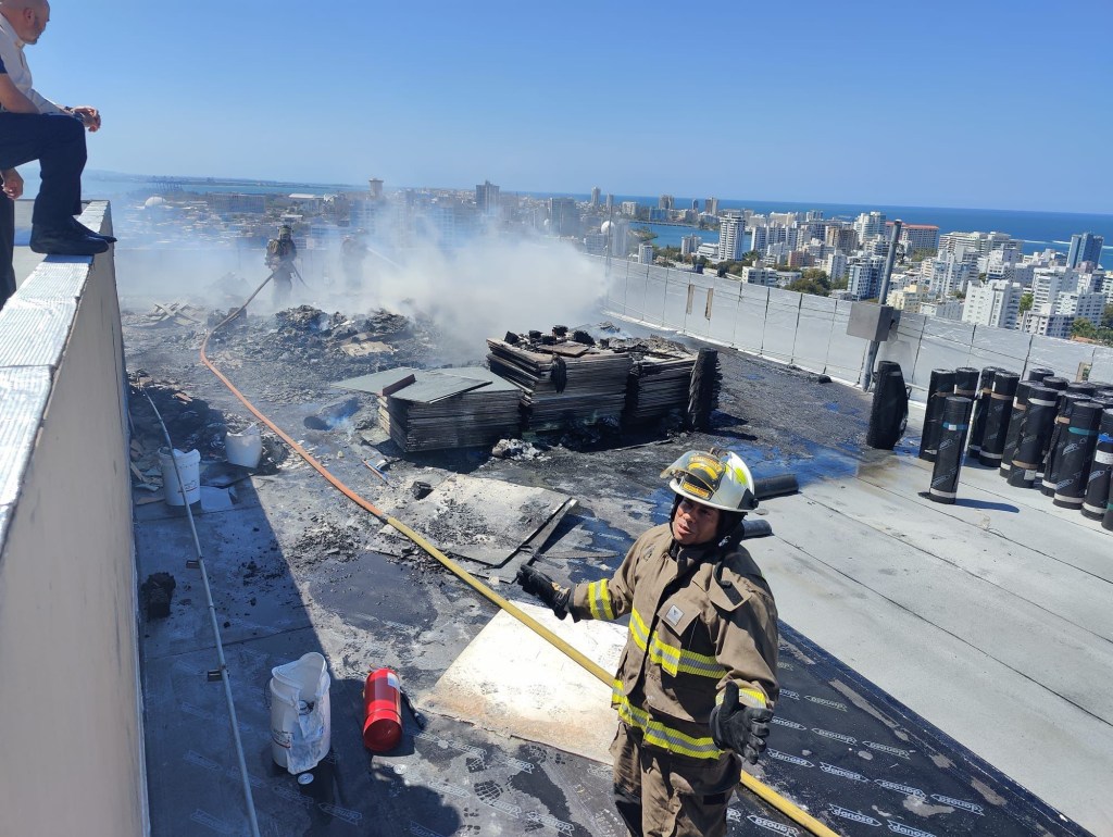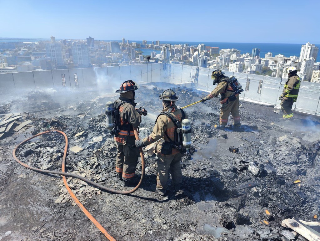 15/marzo/2023- Unidades de la División de Operaciones Especiales de los Bomberos y de Manejo de Emergencias, estatal y municipal, trabajan con un incendio ocurrido en la Torre Sur del Centro Gubernamental Minillas en Santurce.